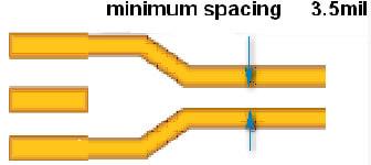 鑼板出貨,線路層走線距板子外形線的距離不小于0.3mm;V割拼板出貨,走線距V割中心線距離不能小于0.4mm