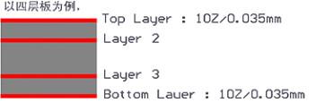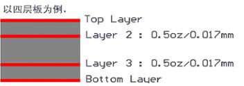 指成品多層板內(nèi)層線路銅箔的厚度,默認(rèn)常規(guī)電路板內(nèi)層銅箔線路厚度為0.5oz。如右圖